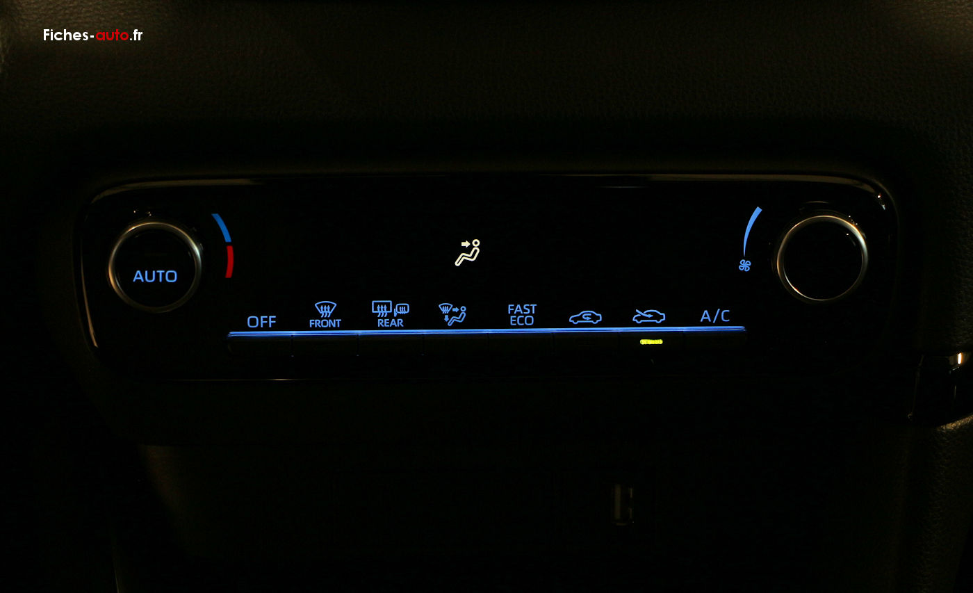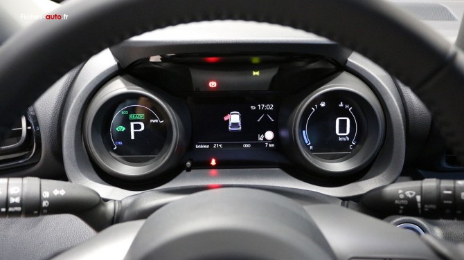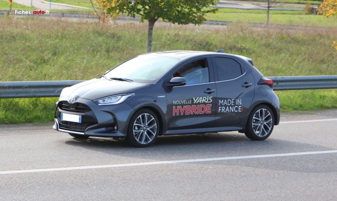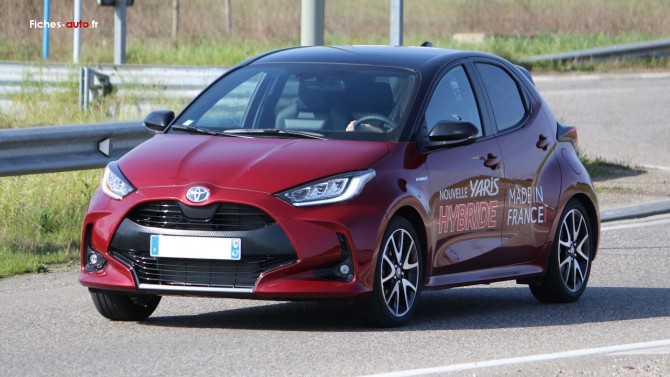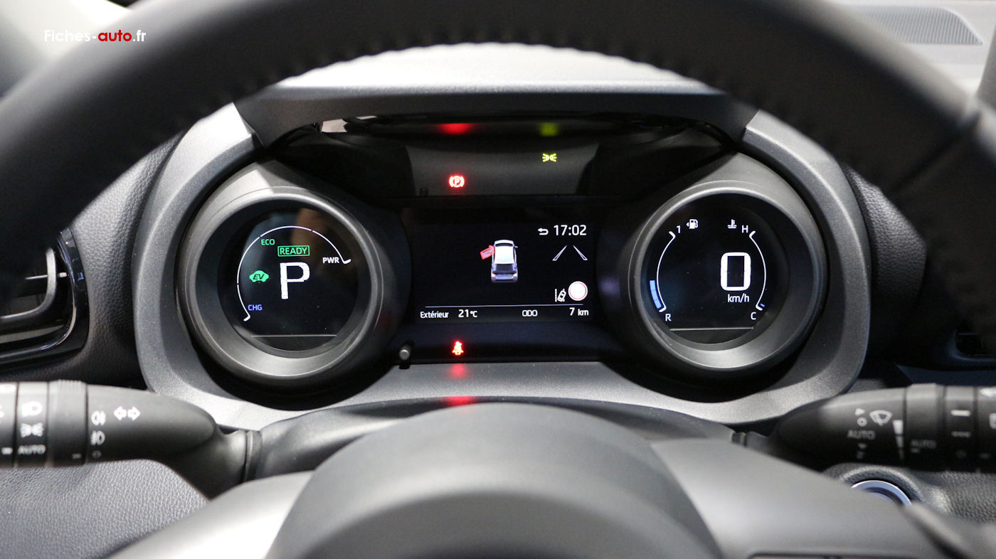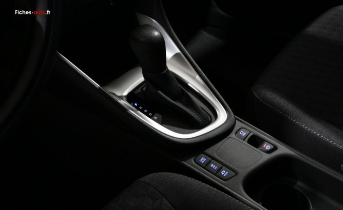 (Source Toyota Mars 2021) A partir de 17 750 euros : Antenne de toit type requin // Enjoliveurs 15” // Feux de jour et feux stop à LED // Projecteurs halogènes avec feux de jour // Frein de parking électronique (sur hybride uniquement) // Nouveaux airbags centraux // Régulateur de vitesse (sur essence uniquement) // Système d’appel d’urgence automatique “E-Call” // Système de sécurité Toyota Safety Sense™: Système de sécurité précollision avec détection des véhicules, piétons et cyclistes, actif également dans les intersections, Alerte de franchissement de ligne avec aide au maintien dans la file, assistant de trajectoire et détecteur de fatigue, Régulateur de vitesse adaptatif intelligent allant jusqu’à l’arrêt (sur hybride uniquement), Lecture des panneaux de signalisation avec limiteur de vitesse, Gestion automatique des feux de route // Accoudoir central (sur hybride uniquement) // Allumage automatique des feux // Banquette arrière rabattable 60/40 // Caméra de recul (sur 120 VVT-i uniquement) // Ciel de toit gris clair // Climatisation automatique (sur hybride uniquement) // Climatisation manuelle (sur essence uniquement) // Détecteur de pluie // Double plancher de coffre (indisponible sur 70 VVT-i) // Services connectés MyT® // Système audio Toyota Touch® : écran tactile 7”, radio digitale (DAB), système de téléphonie Bluetooth®(1), connectique auxiliaire/USB et 4 haut-parleurs // Système de connectivité smartphone(1) Toyota Touch® & App compatible avec Apple CarPlay(2) et Android Auto(2) // Système de fixations Isofix® aux places latérales arrière // Système d’ouverture/fermeture et démarrage sans clé “Smart Entry & Start” (sur hybride uniquement) // Tableau de bord moussé // Volant cuir