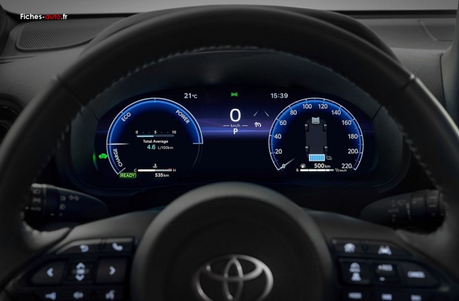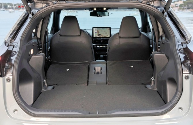(Source Toyota septembre 2022) A partir de 26 900 euros : Antenne de toit type requin // Enjoliveurs 16” // Feux avant halogène // Détecteur de pluie // Système d’appel d’urgence automatique “E-Call“ // Frein de parking électronique // Toyota Safety Sense™ (Système de sécurité précollision avec détection des véhicules, piétons (de jour et de nuit) et cyclistes, actif également dans les intersections, Alerte de franchissement de ligne avec aide au maintien dans la voie, assistant de trajectoire et détecteur de fatigue, Régulateur de vitesse adaptatif intelligent allant jusqu’à l’arrêt, Lecture des panneaux de signalisation avec limiteur de vitesse, Gestion automatique des feux de route) // Caméra de recul // Climatisation automatique // Connectivité smartphone(1) (Apple CarPlay & Android Auto)(2) // Double plancher de coffre // Écran tactile 8” avec 4 haut-parleurs // Écran TFT 4,2” // Intérieur gris clair // Rétroviseurs extérieurs rabattables électriquement et chauffants // Sellerie tissu gris // Siège passager réglable en hauteur // Sièges arrière rabattables 40:60 // Système d’ouverture / fermeture et démarrage sans clé // Vitres avant & arrière électriques // Volant cuir