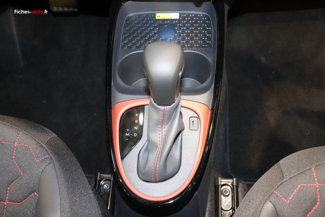 A partir de 16 190 euros : Coques de rétroviseurs peintes en noir // Poignées extérieures de portes couleur carrosserie // Limiteur de vitesse // 1 port USB de type A sur console centrale // Branche centrale du volant noir laqué // Caméra de recul // Compte-tours // Connectivité smartphone(2) (Apple CarPlay & Android Auto)(3) // Levier de vitesses en cuir avec surpiqûres // Pommeau de levier de vitesses avec contour chromé (boîte manuelle) // Rétroviseurs dégivrants et réglables électriquement (rabattables manuellement). // Siège conducteur réglable en hauteur // Système multimédia Toyota Touch® avec écran couleur tactile 7”, radio digitale (DAB), système téléphonique Bluetooth®(2) et 4 haut-parleurs // Volant cuir