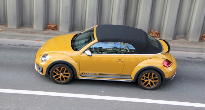 Look "retro" réussi. Très facile à conduire, silencieuse et confortable, (1.2 TSI 105 ch Boite manuelle, 92000 kms, 2014, jantes alu vintage, cabriolet)