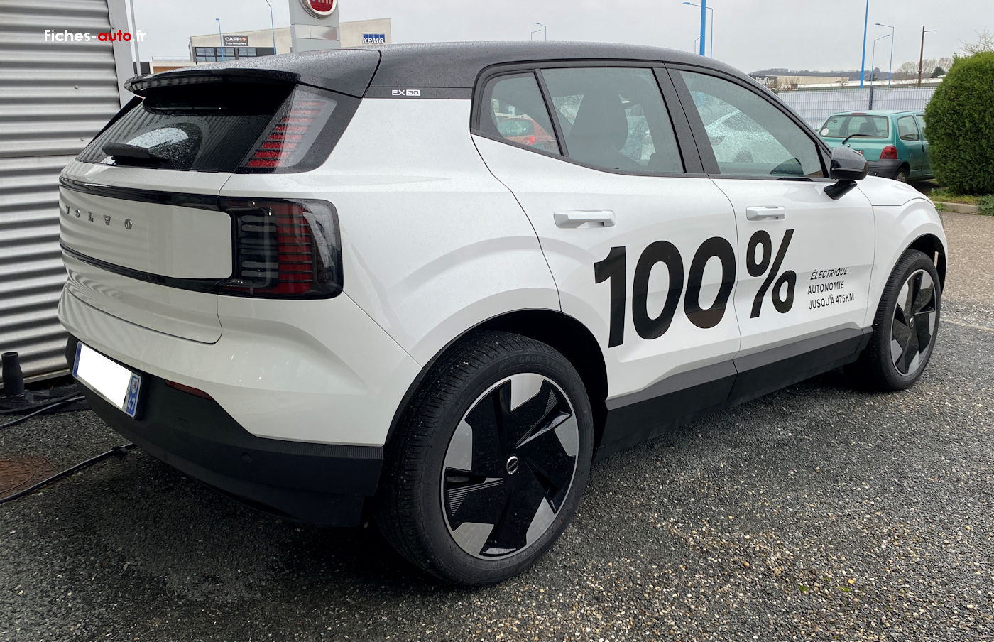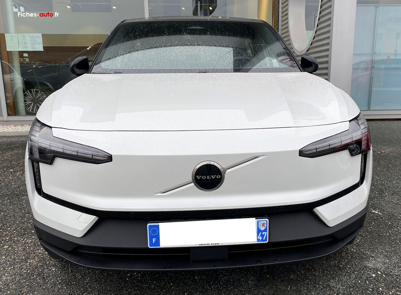 (Source Volvo Mars 2024) A partir de 37 500 euros : Système d’anticipation de collision intelligent // Assistance à l’anticipation et à l’atténuation des collisions avec action sur le freinage // et la direction // Régulateur adaptatif de vitesse et de distance // Caméra de recul // Radars de stationnement arrière // Alerte vigilance conducteur // Alerte franchissement de ligne active // Reconnaissance des panneaux de signalisation // Indicateur de perte de pression des pneus // 2 cartes de verrouillage et déverrouillage du véhicule // Bouton de verrouillage centralisé sur l’accoudoir central avant // Airbags conducteur et passager // Airbags latéraux droit et gauche pour le conducteur et droit pour le passager avant // Airbags rideaux // Airbag passager désactivable avec témoin d’indication (on/off) // Alarme // Préparation pour le système Isofix (places latérales de la deuxième rangée) // En cas de collision, envoi automatique d’une alerte au service d’urgence (1) (2) // Accès au service d’urgence Volvo via bouton SOS dans le plafonnier(2) // Accès au service d’assistance Volvo via bouton dédié dans le plafonnier(3) // Trousse de 1ers secours et triangle de présignalisation // Kit anti-crevaison // Pompe à chaleur (sur Single Extended Range) // Câble de recharge Type 2, 32A triphasé // Conduite à une pédale ou One Pedal Drive // Dossier de la banquette arrière rabattable 60/40 // Volant réglable en hauteur et en profondeur // Climatisation automatique monozone // Fonction climatisation de l’habitacle moteur coupé // Système de pré conditionnement de l’habitacle (chauffage) // Allumage automatique des feux et des essuie-glaces avant // Éclairage d’approche et d’accompagnement // Frein de parking électronique automatique avec fonction Auto Hold // Direction assistée électrique asservie à la vitesse // Sièges conducteur et passager avec réglage manuel de l’inclinaison du dossier // et de l’assise // Siège conducteur avec réglage manuel de la hauteur // Sièges conducteur et passager avec supports lombaires fixes // Vitres avant et arrière électriques à impulsion (montée et descente) avec système // anti-pincement // Miroirs de courtoisie, spots de lecture à l’avant et éclairage dans le coffre // Coffre sous le capot avant d’une capacité de 7 litres // Rétroviseurs extérieurs chauffants et rabattables électriquement // Jantes alliage 18" // Phares LED avec feux de jour // Sellerie Marine // Tissu bleu Marine / Nordico Noir // Volant sport noir // Grand écran central flottant 12,3’’ // Système d’infodivertissement Android avec services Google // Application Volvo EX30 sur smartphone iOS et Android(5) // Système audio Volvo High Performance avec barre de son : 5 Haut-parleurs dont // un woofer puissance totale 100W // 2 ports USB C à l’avant // Connexion Bluetooth®(5) // Commandes audio au volant // Apple CarPlay sans fil