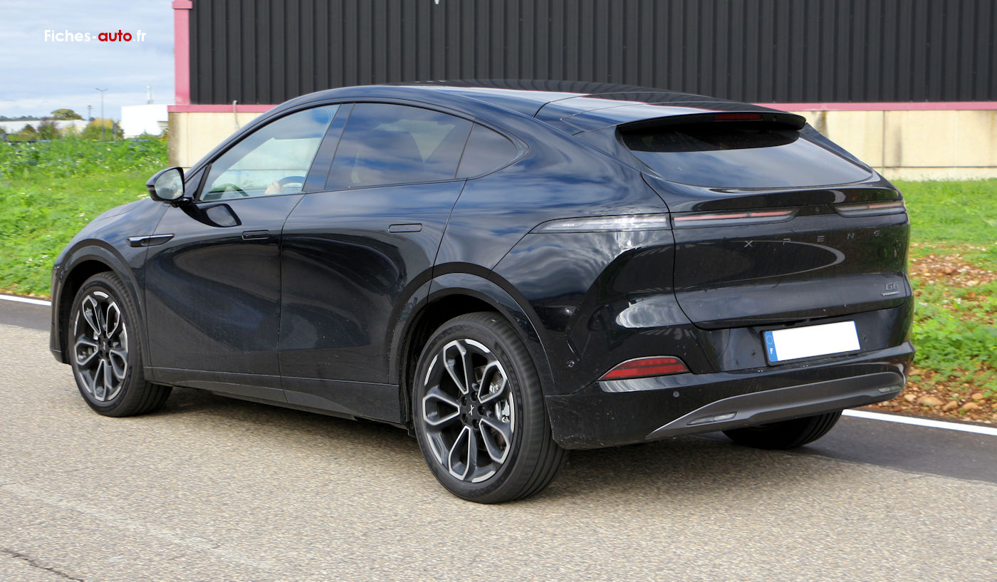 (Source Xpeng configurateur France avril 2026) A partir de 42 990 euros : Jantes alliage 20 pouces avec pneus Michelin // Propulsion // Batterie LFP 68.5 kWh bruts // Autonomie WLTP 470 km // Recharge DC 382 kW avec 10 à 80 % en 12 minutes // Recharge AC 10.5 kW // Pompe à chaleur // Toit panoramique vitré // Portes sans encadrement // Poignées affleurantes // Hayon électrique // Coffre 571 litres / 1374 litres banquette rabattue // Sièges avant électriques chauffants et ventilés // Siège conducteur réglable 12 voies // Banquette arrière inclinable sur 12 positions // Volant chauffant réglable électriquement // Ecran central 15.6 pouces // Instrumentation numérique 10.25 pouces // Apple CarPlay et Android Auto // Système audio XOPERA 18 haut-parleurs // Caméra 360 degrés // Châssis transparent // Dashcam intégrée // Mode sentinelle // XPILOT Assist // Régulateur adaptatif // Maintien actif dans la voie // Changement de voie automatique // Stationnement automatique amélioré // Stationnement à distance via application // Clé smartphone / NFC / UWB // Application XPENG avec fonctions à distance // Mises à jour OTA