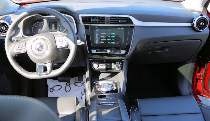 Sans vouloir exagérer le trait ni être caricatural, il faut vraiment reconnaître avec objectivité que ce MG ZS, malgré un physique qui reste modeste de l'extérieur, offre un habitacle d'une qualité qu'on ne pouvait pas espérer ni prétendre ... Que ce soit au niveau des matériaux et des ajustements, tout cela sent très bon la qualité. Et c'est davantage côté présentation que l'on pourra rester sur notre faim, car on est clairement sur un habitacle qui rappelle les années 2010. Le volant accentue encore plus le trait ...